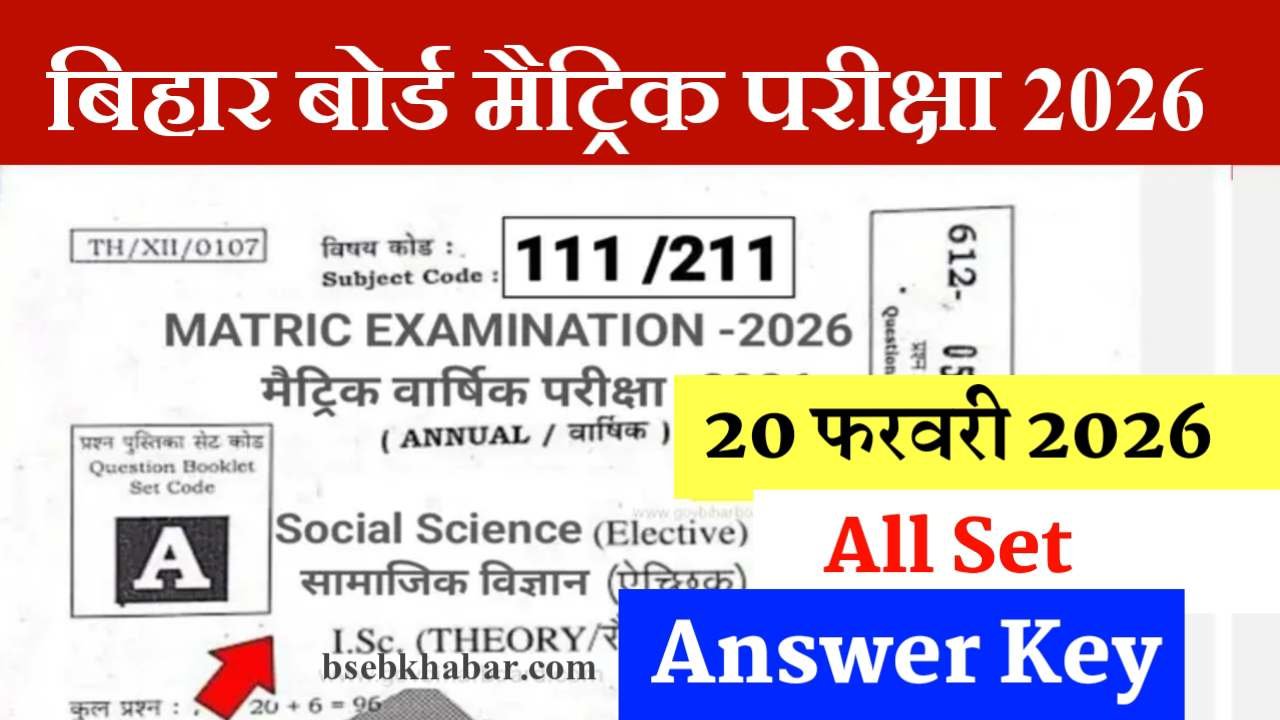 Bihar Board 10th Social Science Answer key 2026: नमस्ते प्यारे दोस्तों। बिहार स्कूल एग्जामिनेशन बोर्ड 17 फरवरी से 25 फरवरी, 2026 तक वार्षिक मैट्रिक की परीक्षा करवा रहा है, और बोर्ड ने तीन सब्जेक्ट की परीक्षा सफलतापूर्वक कर ली है। सोशल साइंस की परीक्षा 20 फरवरी, 2026 को होनी है, और मैं आपको इस आर्टिकल में डिटेल में 100% सही आंसर की दूंगा। बिहार बोर्ड 10th सोशल साइंस आंसर की 2026 के बारे में पूरी जानकारी के लिए, कृपया पूरी पोस्ट पढ़ें।